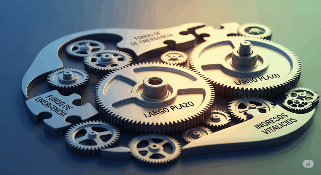 Por ejemplo, puedes combinar la creación de un fondo de emergencia con inversiones a largo plazo para tu retiro, o activos que te generen ingresos vitalicios.