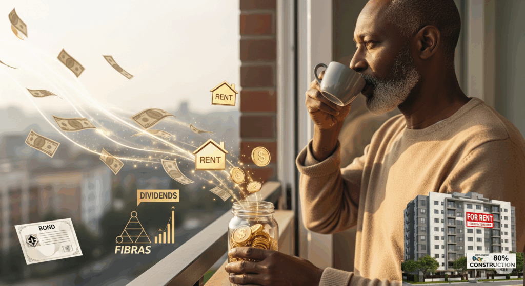 Ejemplos: Esto incluye acciones de empresas que pagan dividendos, la renta de inmuebles, invertir en FIBRAs (Fideicomisos de Inversión en Bienes Raíces), o el crowdfunding inmobiliario.